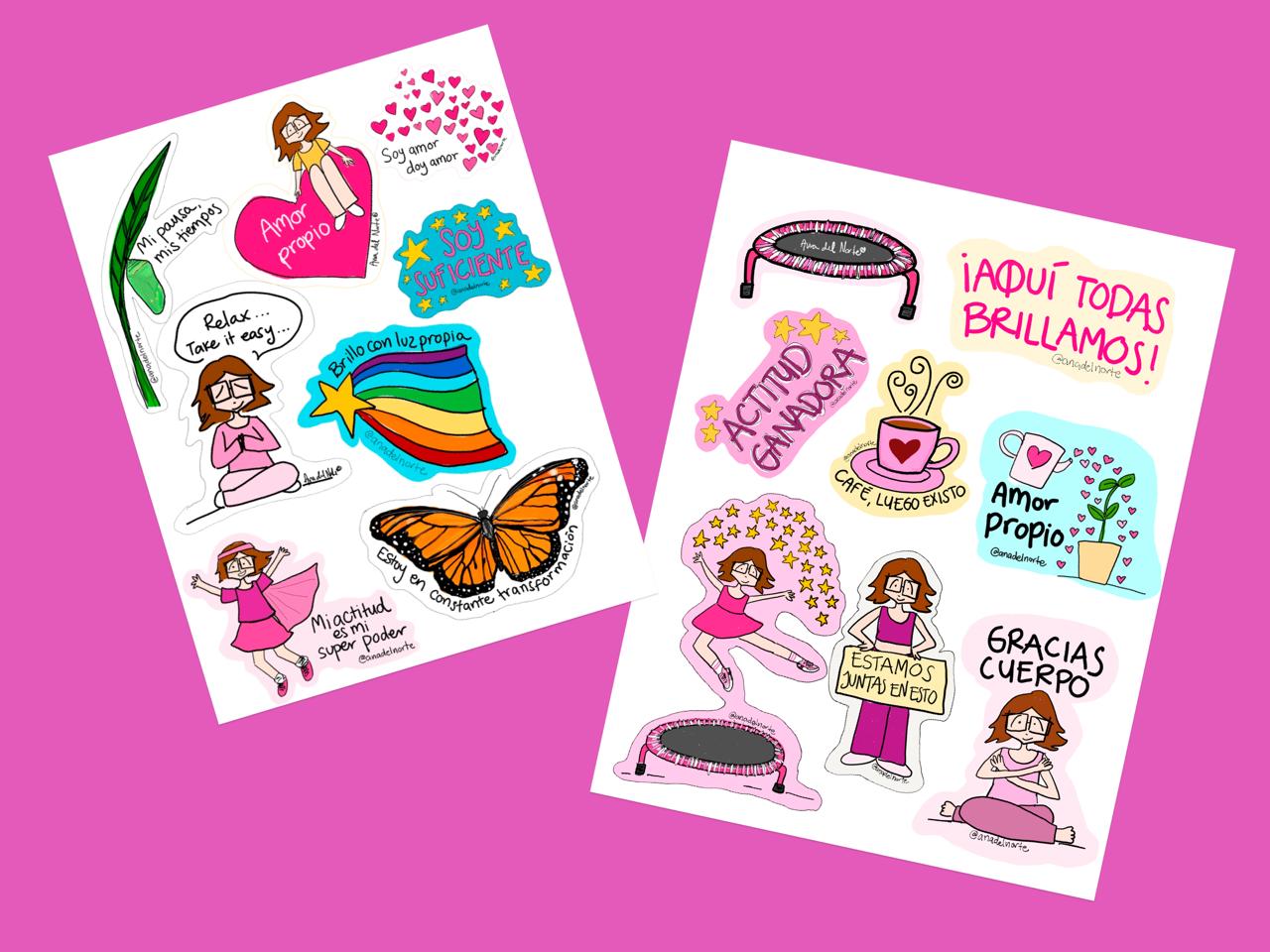Plantilla con 8 stickers autoadhesivas de ilustraciones de Ana del Norte.