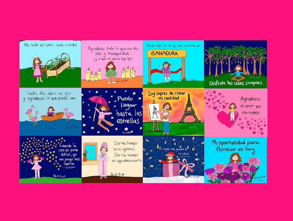 Calendario con ilustraciones motivacionales y llenas de color, para agregar algo de color a la vida. Es el quinto calendario que realizo, así que es hermoso saber que muchas de ustedes ya tienen un par de años disfrutando mis ilustraciones.